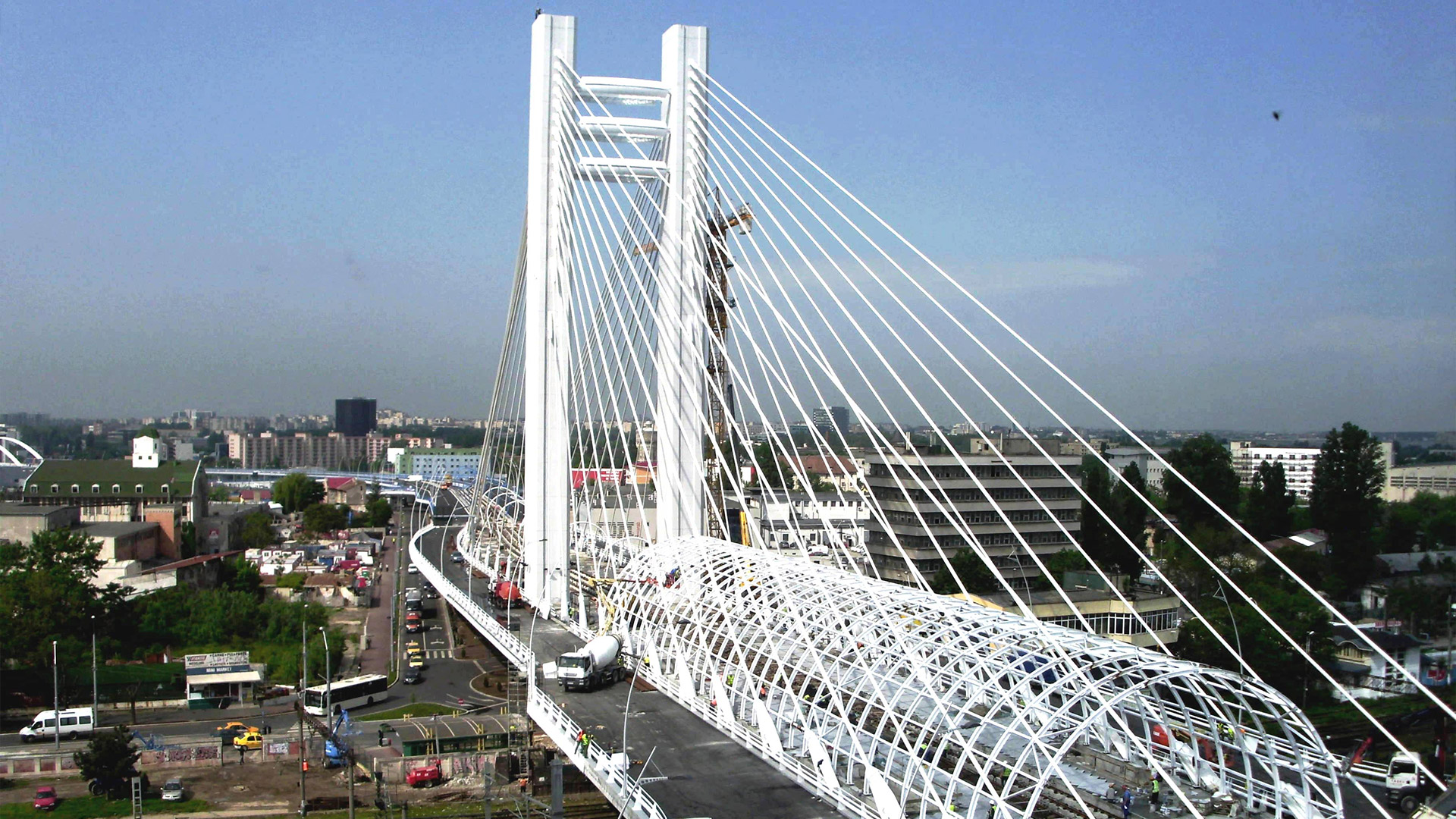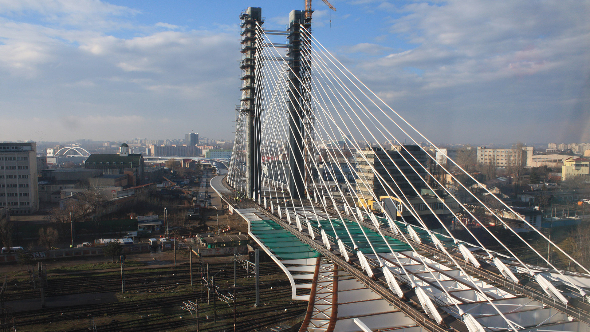 The bridge hosts tram line 1, Bucharest's only circular line that follows the city's inner ring road.
