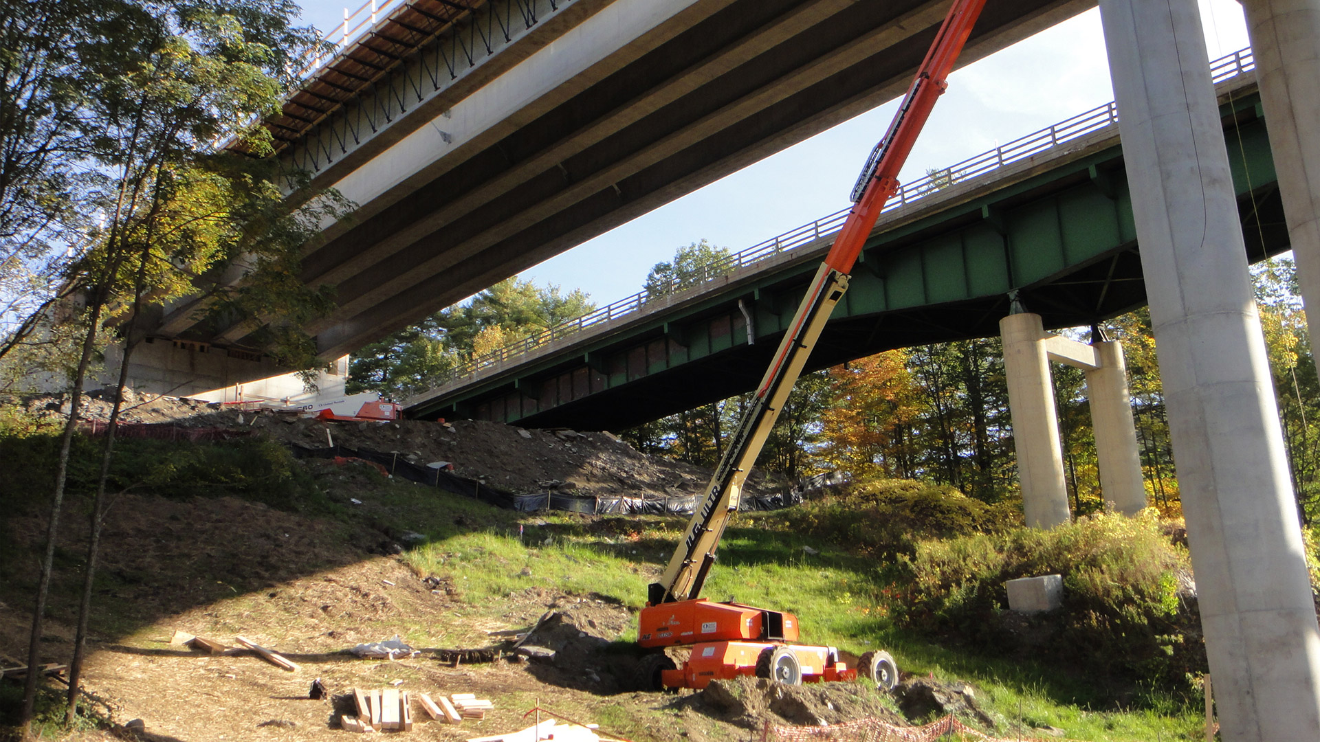 Lane Construction (Webuild Group) is responsible for renovating the northbound and southbound bridges on Interstate 91 in Windsor, Vermont, over the Mill Brook River. The project involves the complete replacement of existing infrastructure with new superstructures and foundations, project quality control and assurance, and traffic management to ensure at least one lane of I-91 is kept open in each direction throughout the construction using temporary detours.