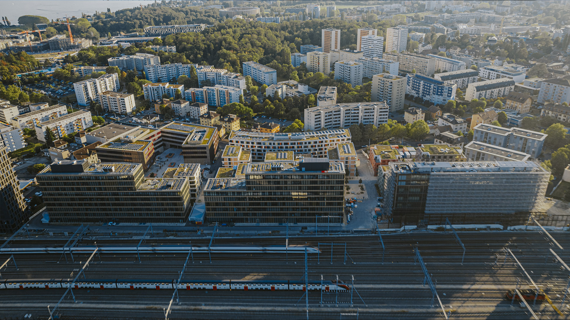 This is the setting in which Webuild has created the new Parc du Simplon business and residential district in Lausanne, close to the border with France. The project involves the construction of 10 public buildings with a total volume of 169,150 cubic metres and eight residential buildings with a total of 200 apartments and two office buildings.