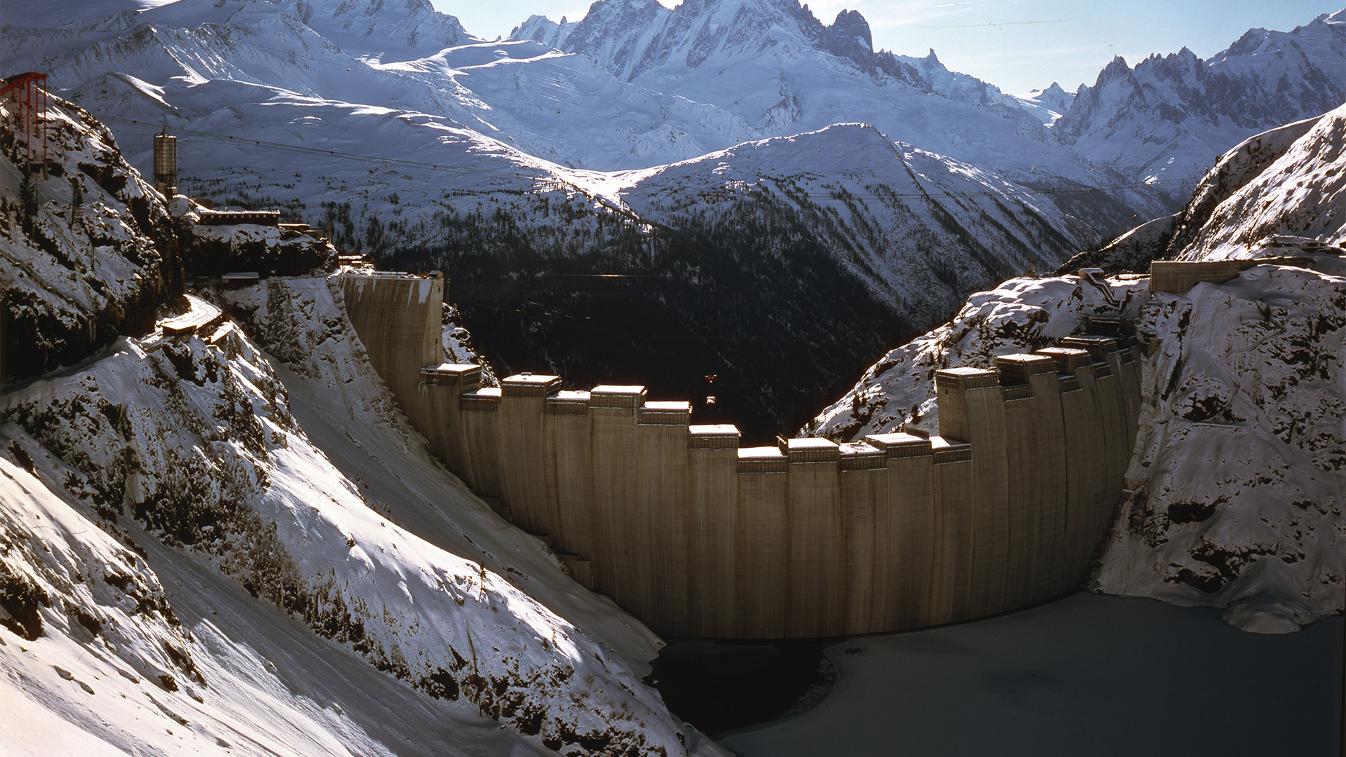 The Emosson Dam, located in the Swiss Alps, is one of the region's major hydroelectric engineering works. Construction began in 1967 and was completed in 1974.