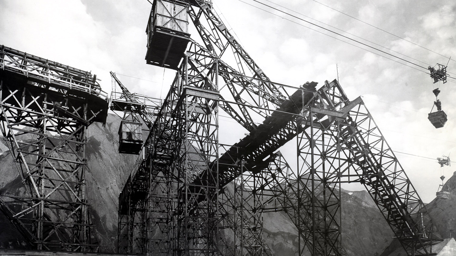 A railway line allowed them to draw gravel, sand, and stones extracted from a quarry 3 km away. Instead, trolleys, cranes and cable cars allowed cement and concrete to be transported to the site.