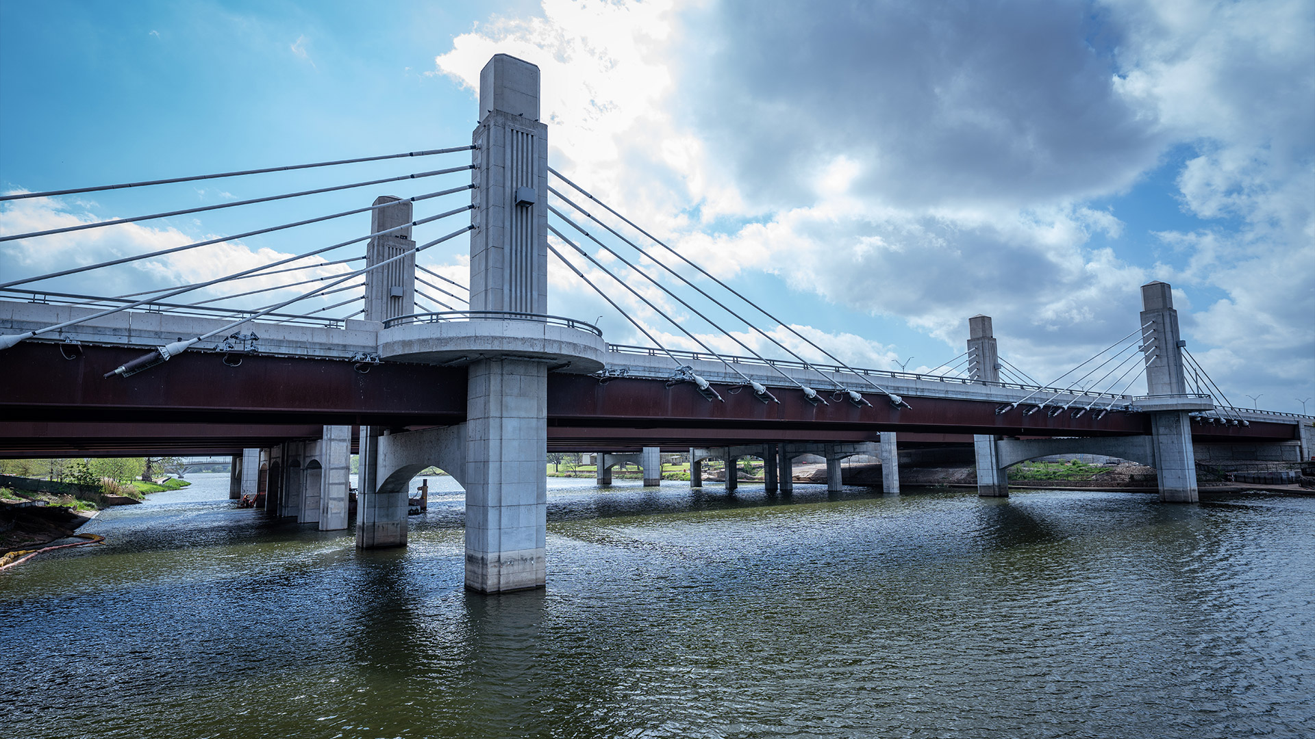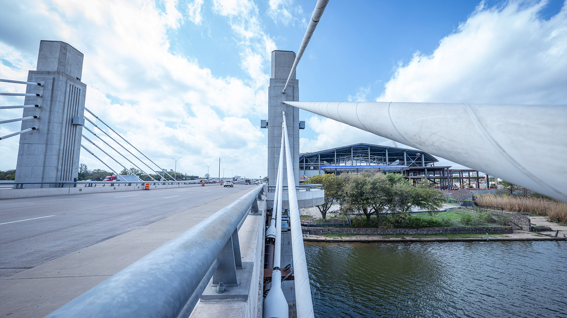 Lane Construction (Webuild Group) reconstructed 10 miles of Interstate 35 in the Waco, Texas region. The project includes the reconstruction of six main concrete lanes and the addition of new two-lane asphalt roads and parallel concrete roads. It includes the construction of 26 bridges, including a cable-stayed bridge over the Brazos River and a direct connector bridge to connect FM 2013 to northbound I-35.
