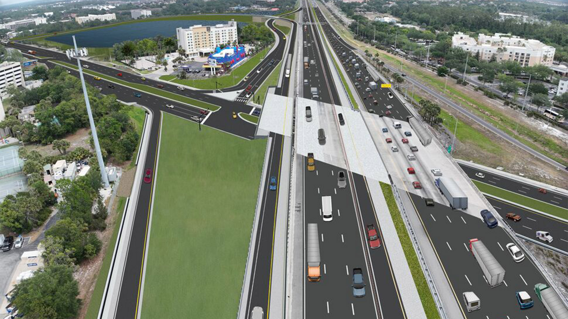 At the highway interchange between I-4 and Apopka-Vineland Road (State Road 535) in Orange County, Florida, work is underway to relieve traffic congestion and improve road safety.