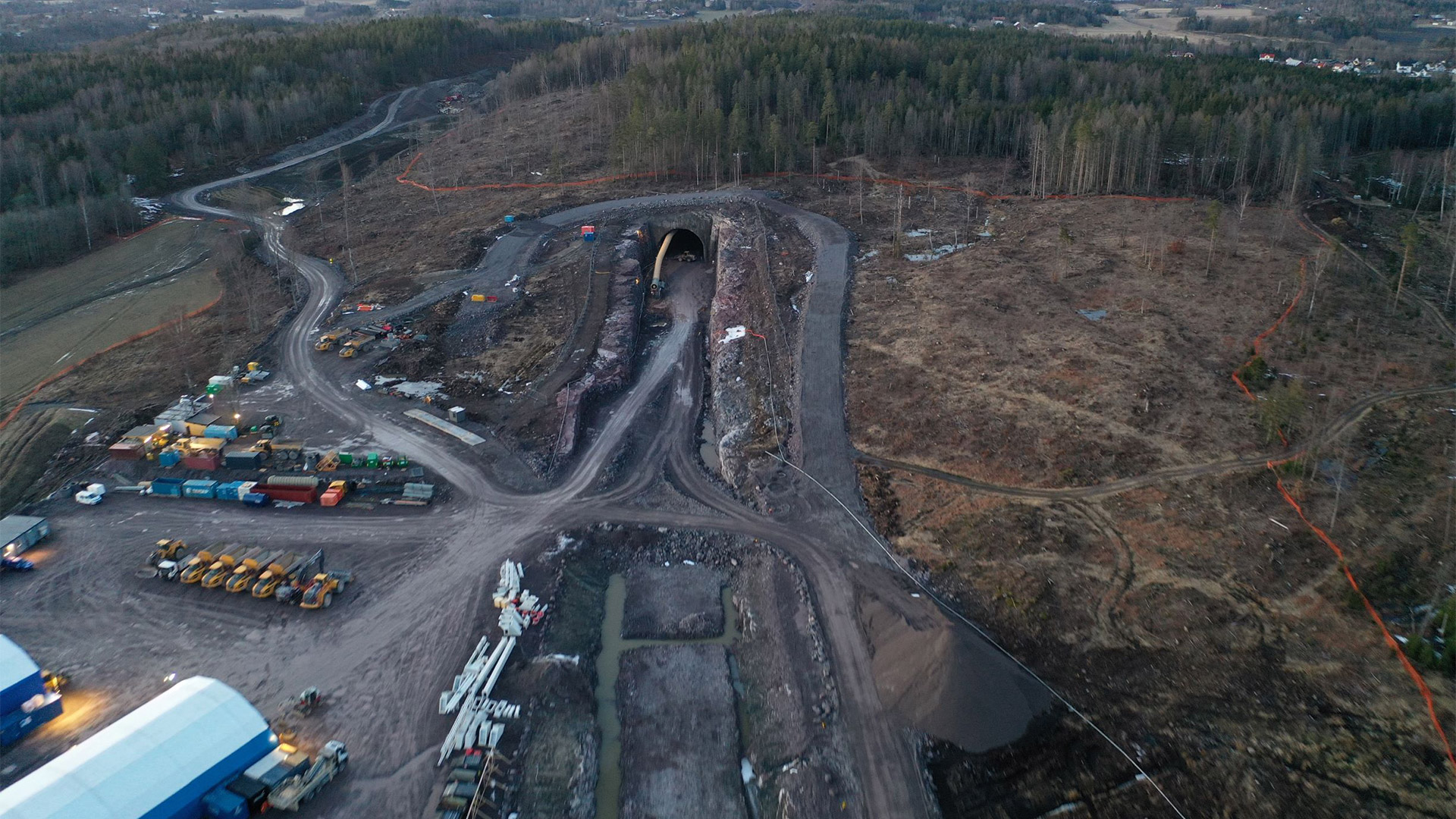The new double-track line includes two bridges, three tunnels (two using drill & blast, one using cut & cover), and a station near the town of Horten.