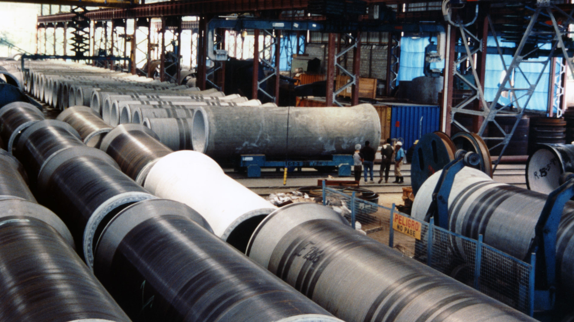 In un impianto appositamente costruito è stata ottenuta una produzione media di 30 tubi al giorno, lughi 7 m, diametro interno di 1,7 m e spessore di 15 cm.