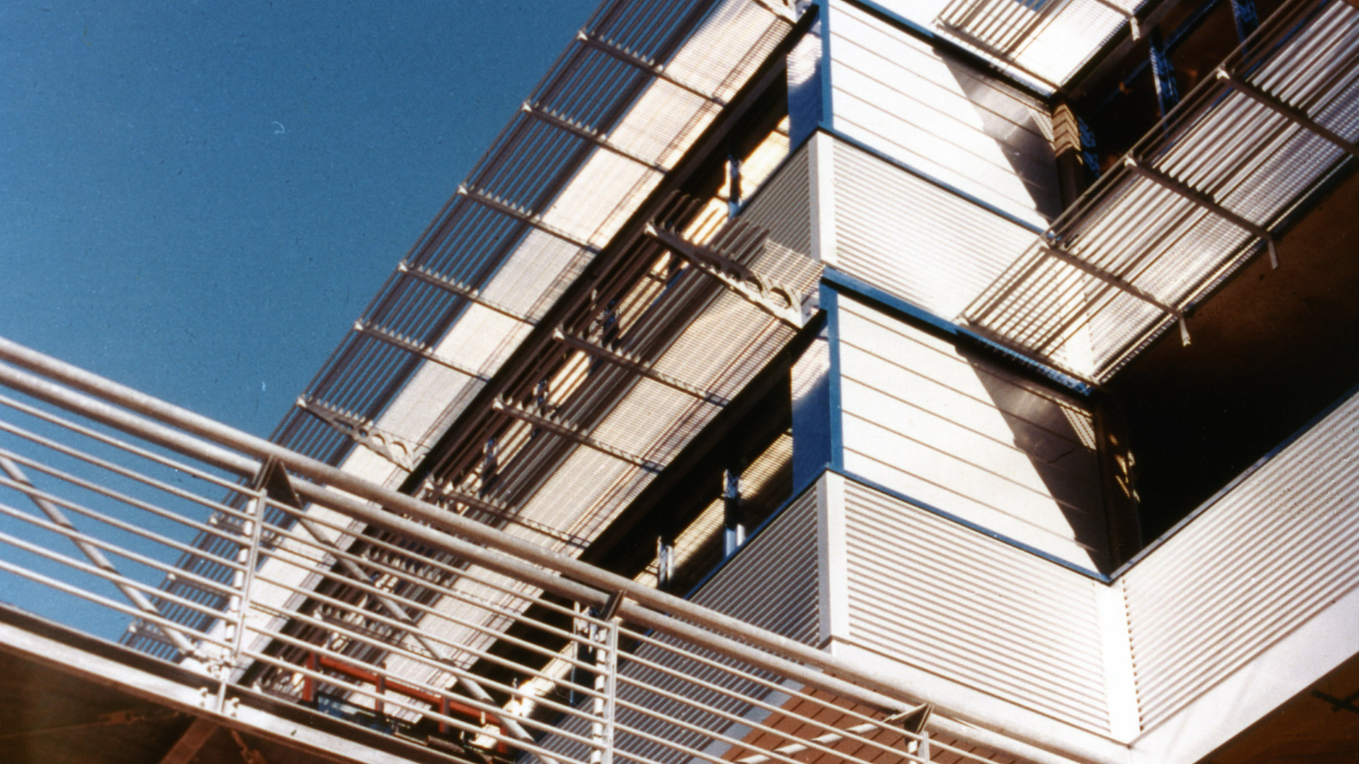 La struttura si sviluppa su sei livelli – un piano interrato (auto-rimessa), un piano seminterrato e quattro piani fuori terra – per un’altezza complessiva che non supera i 18 m, per consentire il rispetto di precisi vincoli architettonici e contenere il fabbricato al di sotto dei pini marittimi presenti.