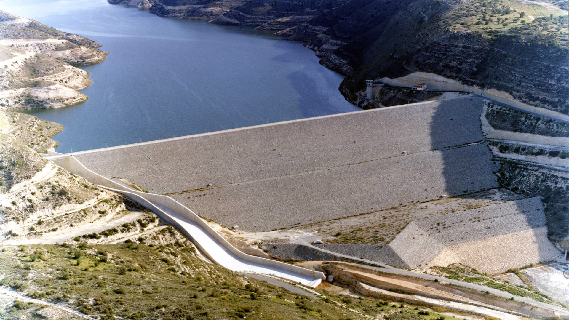 La diga è in terra con nucleo centrale in argilla. Alta 100 m, lunghezza in cresta di 560 m e larghezza di 14 m. Ha uno sfioratore a stramazzo sulla riva destra lungo 70 m e un canale di scarico di circa 700 m di lunghezza che termina in un dissipatore a salto di sci completato da un bacino di calma. Tra i lavori realizzati per questo progetto ci sono anche una galleria di deviazione sulla riva sinistra, lunga 600 m e con diametro di 4,20 m, con una struttura di presa; torre di presa dove sono ubicate le aperture per la captazione delle acque di irrigazione; lavori di perforazione e iniezione, eseguiti da cunicoli, per il consolidamento delle fondazioni e delle spalle della diga; opere complementari e strade di accesso.
