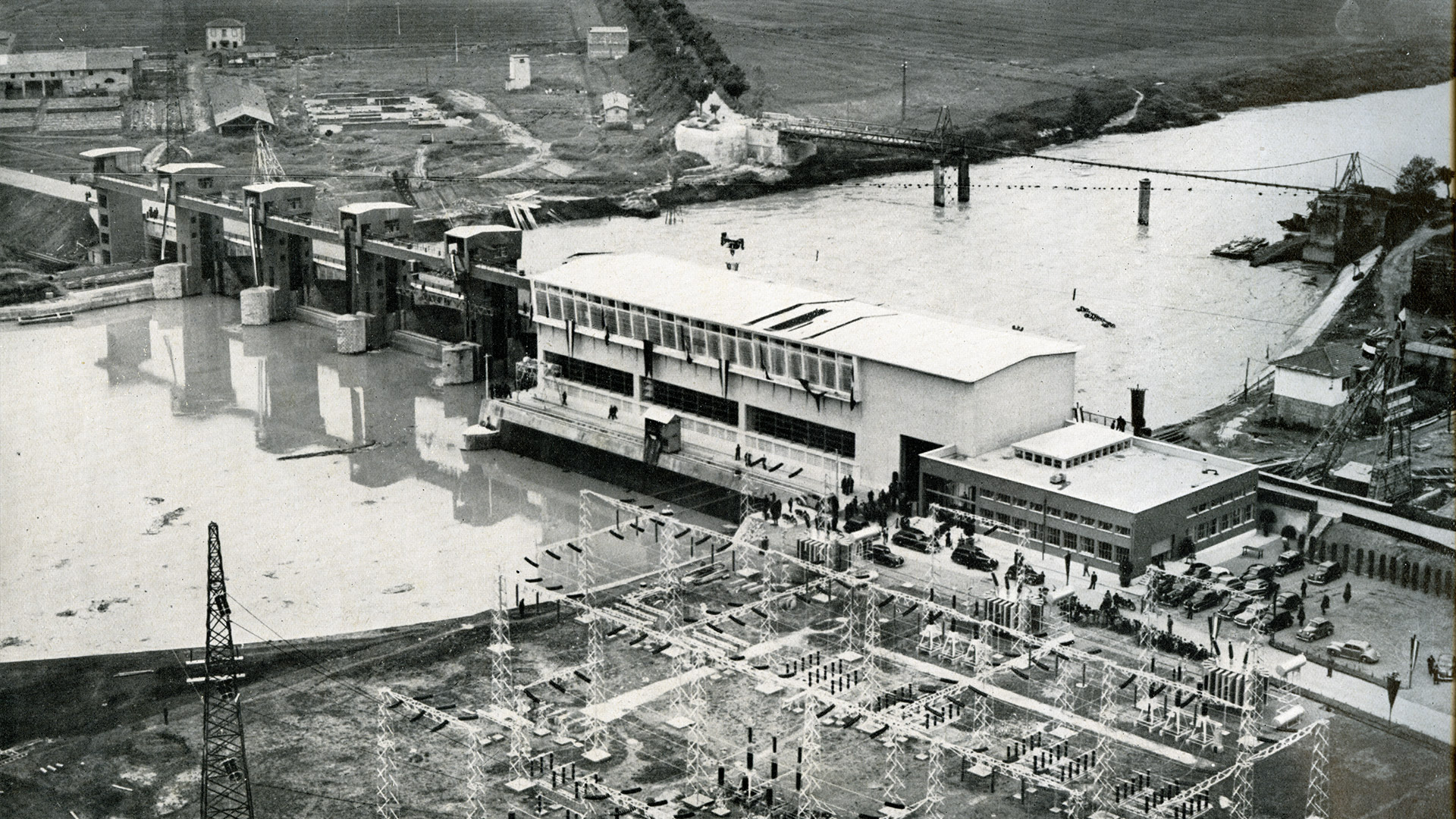 La diga di Castel Giubileo, associata all'impianto, regola il flusso del fiume e crea un bacino artificiale che alimenta le turbine.