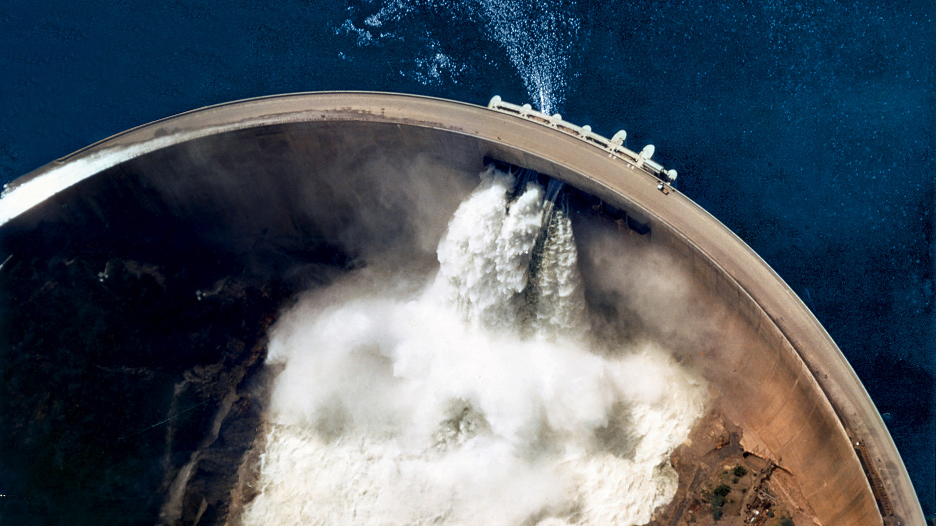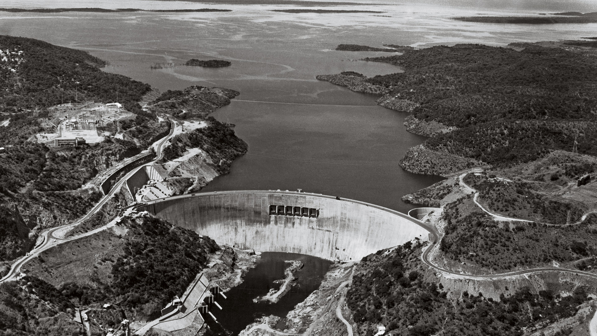 Con 975.000 metri cubi di calcestruzzo, la diga chiude la gola di Kariba, che stringe lo Zambesi tra due catene montuose, una zona che da sempre la tradizione locale associa al pericolo, alla paura e alla leggenda del Dio fiume, «che inviolabile aleggiava sinistra sulla vita primitiva del luogo». Laggiù, in fondo, «dove il cielo sembra capovolto in una distesa di acqua immobile, dietro la giungla», oltre 10.000 operai, metà locali e metà europei, riuscirono a domare le acque vorticose del quarto fiume più lungo dell’Africa, arginando i danni della piena più devastante della sua storia, avvenuta proprio durante i lavori, nella primavera del 1958.