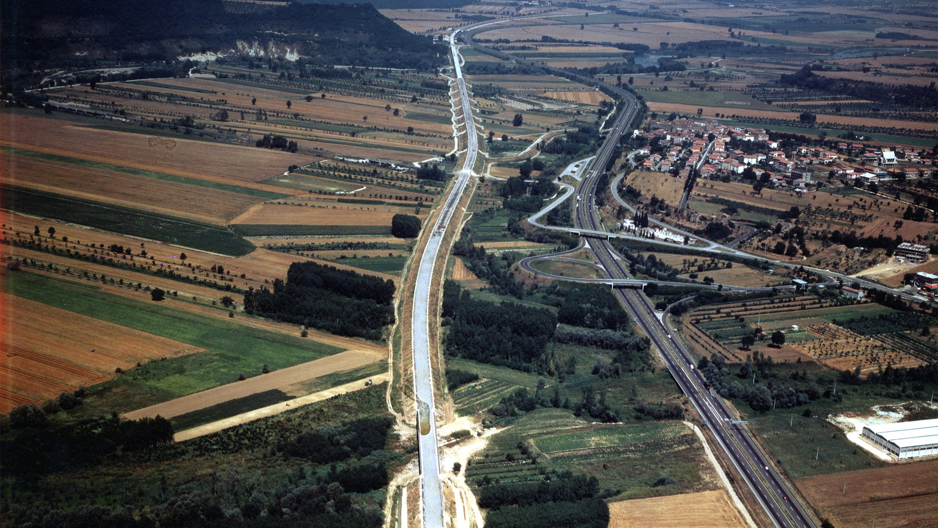 Tra il 1970 e il 1983, con i lotti I-V-VII, sono stati realizzati 100 km di tracciato, scavati 4 milioni di metri cubi di materiale, costruiti 2 ponti a 6 campate (sul Tevere), 14 viadotti e 14 gallerie. Tra queste la Galleria di Castiglione in Teverina (lunga 7.390 metri), prima galleria al mondo con sezione di scavo di circa 100 metri quadri scavata con una macchina combinata Robbins a scudo chiuso con un braccio escavatore a ferro di cavallo, che avanzava di 16,5 metri al giorno.