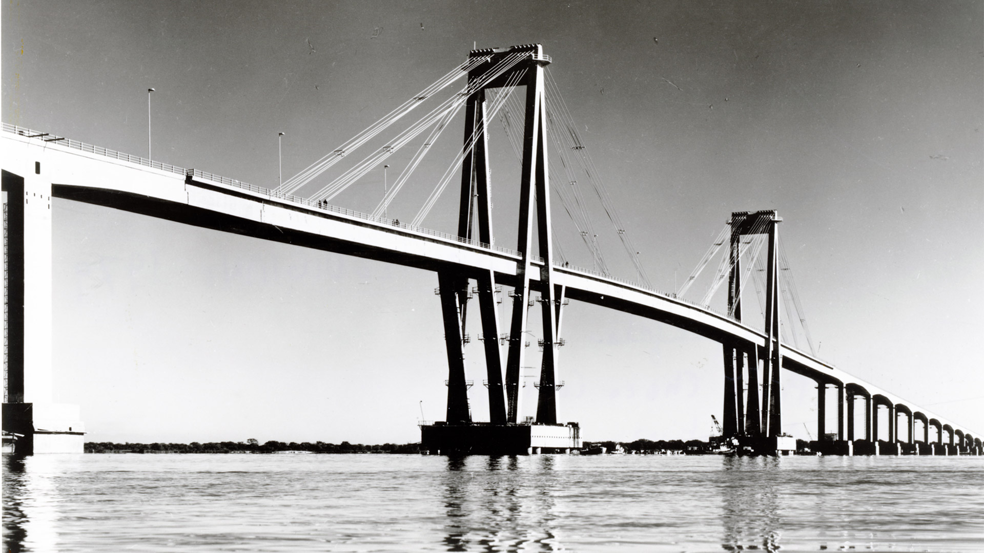 Il fiume Paraná è il secondo fiume più lungo del Sud America, un corso d'acqua infinito che si estende per quasi 5.000 chilometri, attraversando Brasile, Paraguay e Argentina. È proprio tra il Brasile e l'Argentina, tra le province di Chaco e Corrientes, che è stato costruito un grande ponte strallato. Al momento della sua apertura nel 1973, questo ponte rappresentava una novità rivoluzionaria in termini di infrastrutture. Il ponte ha una lunghezza totale di circa 1.700 metri, una campata principale di 245 metri e due campate laterali di 163,9 metri ciascuna, tutte collegate alle strutture a terra da una serie di travi a portale con campate di 83 metri.
