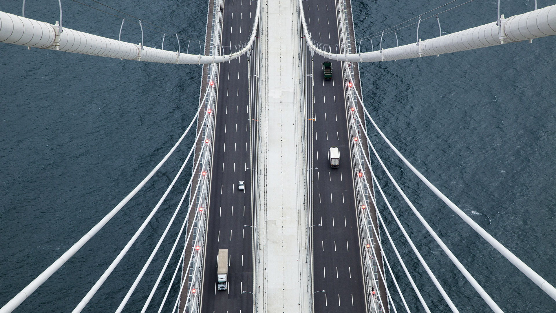 Ecco perché il Terzo Ponte è un’infrastruttura di primaria importanza. Ed è un ponte dei record, l’unico ponte sospeso al mondo con due passerelle pedonali e ciclabili (sui bordi esterni, larghe 2,5 m) e un’autostrada a 8 corsie (4 per senso di marcia) separate da una linea ferroviaria a doppio binario (limiti di velocità 120 km/h per le auto, 160 km/h per i treni passeggeri e 80 km/h per i treni merce). In tutto 120.000 attraversamenti al giorno.